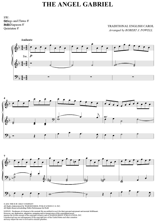 Digital Sheet Music for The Angel Gabriel by Robert J. Powell, Traditional English Carol scored for Organ Solo; id:286800