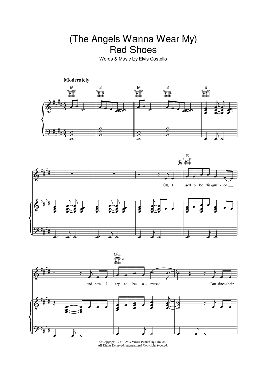 Digital Sheet Music for (The Angels Wanna Wear My) Red Shoes by Elvis Costello scored for Piano/Vocal/Chords; id:401604