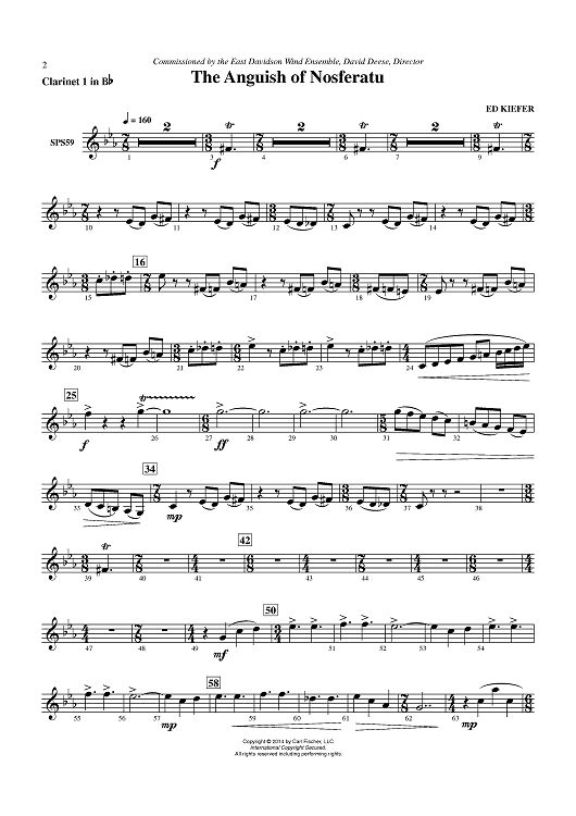 Digital Sheet Music for The Anguish of Nosferatu - Clarinet 1 in Bb by Ed Kiefer scored for Concert Band; id:452523