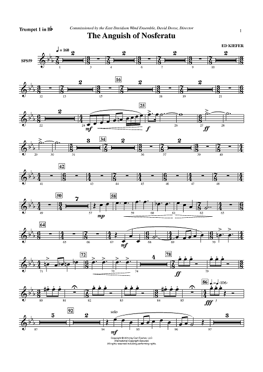 "The Anguish of Nosferatu - Trumpet 1 in Bb" Sheet Music by Ed Kiefer
