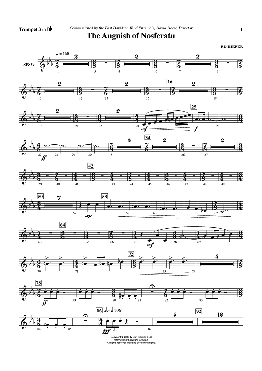 Digital Sheet Music for The Anguish of Nosferatu - Trumpet 3 in Bb by Ed Kiefer scored for Concert Band; id:452534