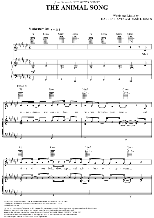 "The Animal Song" Sheet Music by Savage Garden