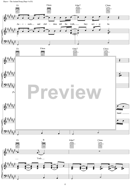 Digital Sheet Music for The Animal Song by Darren Hayes, Daniel Jones, Savage Garden scored for Piano/Vocal/Chords; id:115863