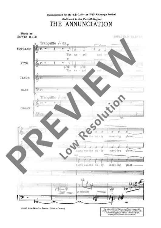 Digital Sheet Music for The Annunciation - Score by Jonathan Harvey scored for Mixed Choir (satb) With Organ; id:484093