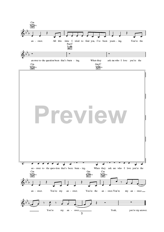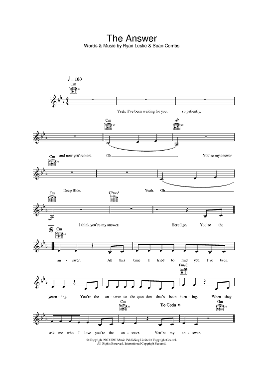 Digital Sheet Music for The Answer by Diddy, Ryan Leslie, Britney Spears scored for Lead Sheet; id:382872