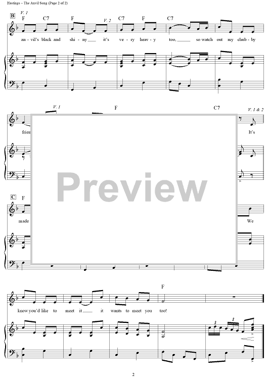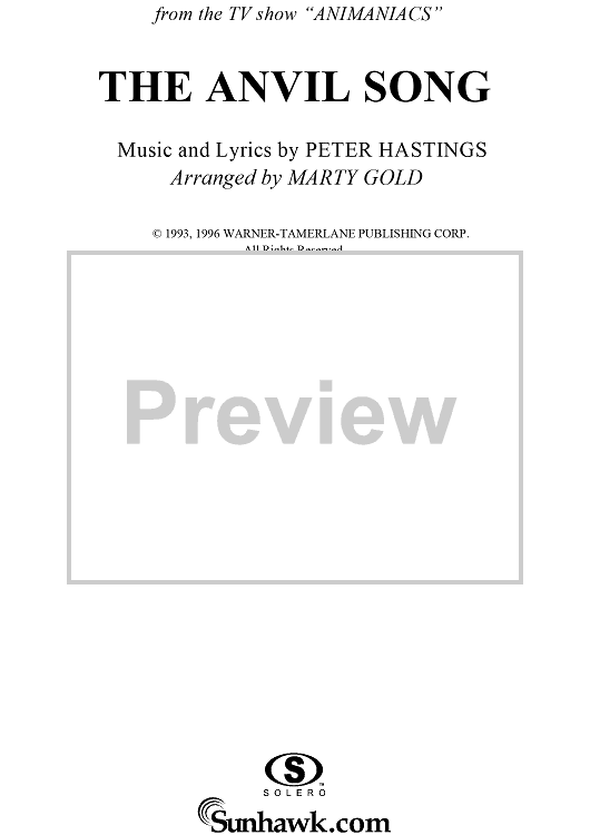 Digital Sheet Music for The Anvil Song by Marty Gold, Peter Hastings scored for Piano/Vocal/Chords; id:116546