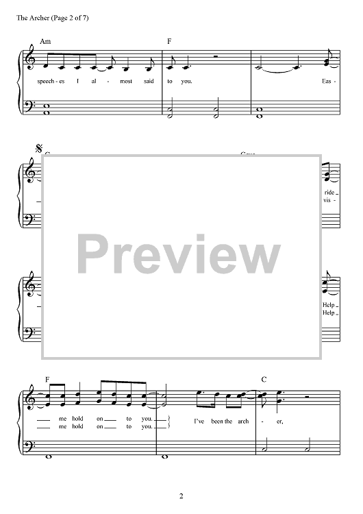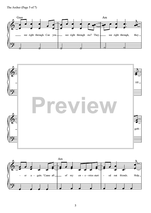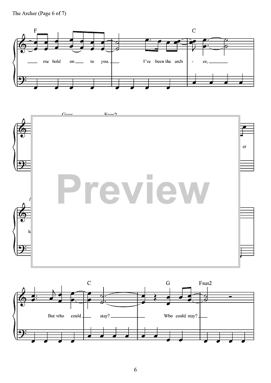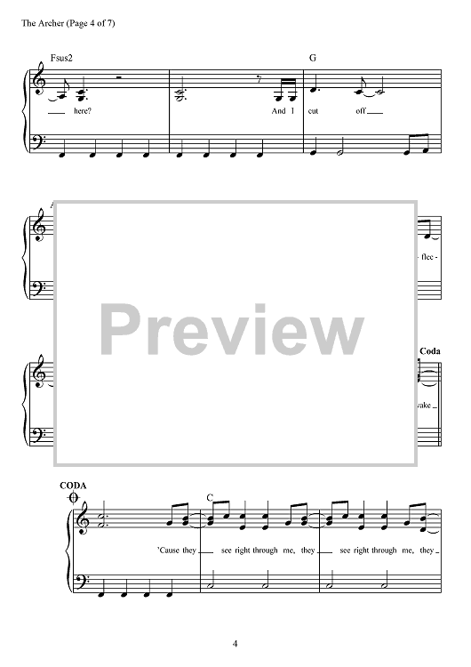 "The Archer" Sheet Music by Taylor Swift