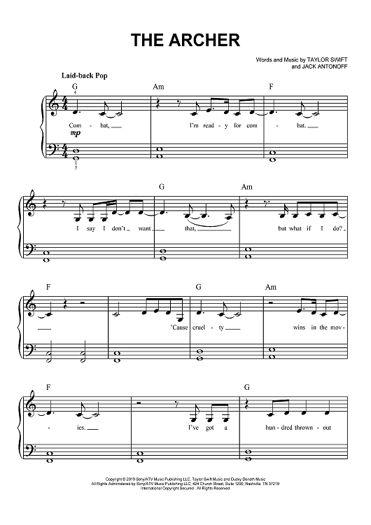 Digital Sheet Music for The Archer by Taylor Swift, Jack Antonoff scored for Easy Piano/Vocal/Chords; id:467723