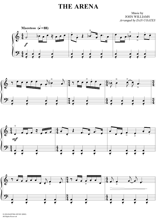 Digital Sheet Music for The Arena by Dan Coates, John Williams scored for Easy Piano; id:291148