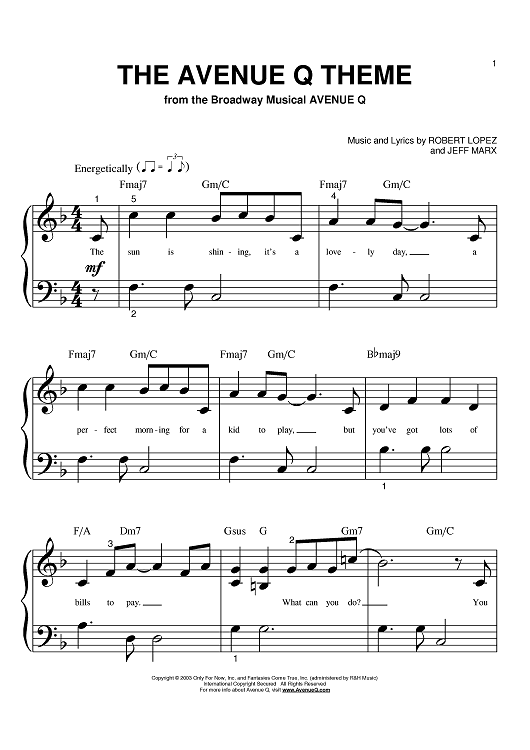"The Avenue Q Theme" Sheet Music by Robert Lopez