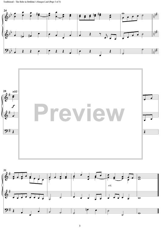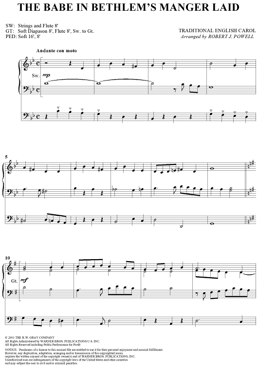 Digital Sheet Music for The Babe in Bethlem's Manger Laid by Robert J. Powell, Traditional English Carol scored for Organ Solo; id:286806