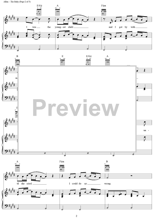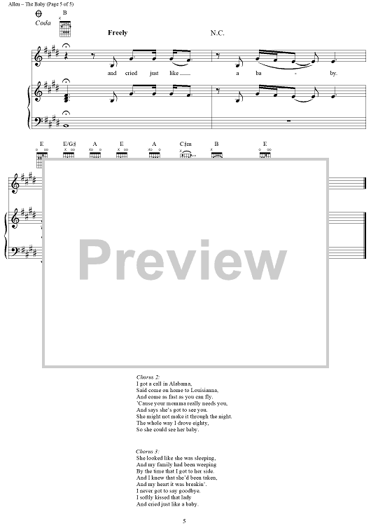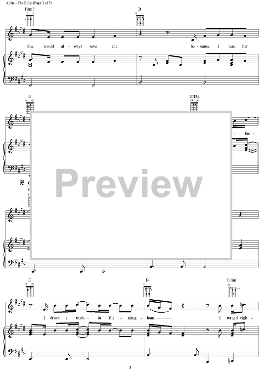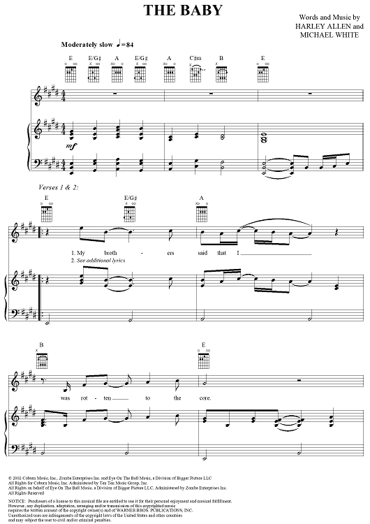 Digital Sheet Music for The Baby by Harley Allen, Michael White, Blake Shelton scored for Piano/Vocal/Chords; id:293639