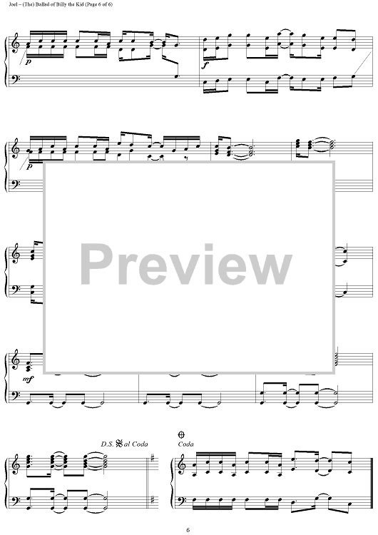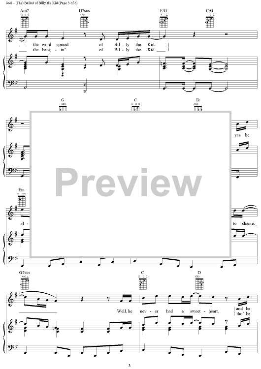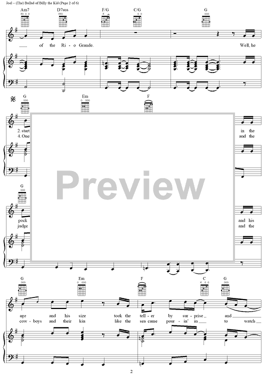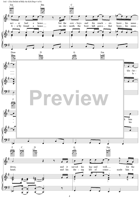 Digital Sheet Music for (The) Ballad of Billy the Kid by Billy Joel scored for Piano/Vocal/Chords; id:403190