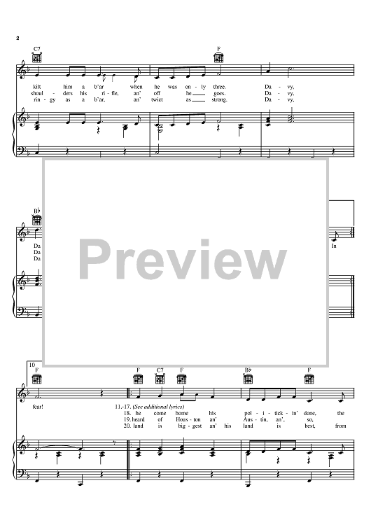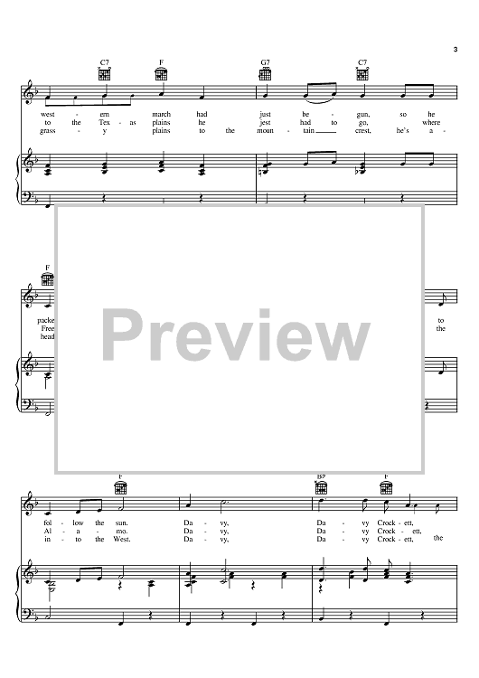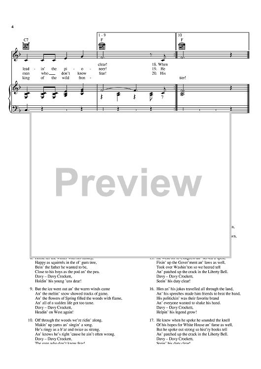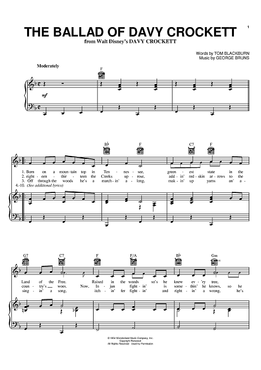 Digital Sheet Music for The Ballad Of Davy Crockett by Bill Hayes, Tom Blackburn, George Bruns, Tennessee Ernie Ford, Fess Parker scored for Piano/Vocal/Chords; id:383979