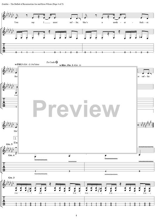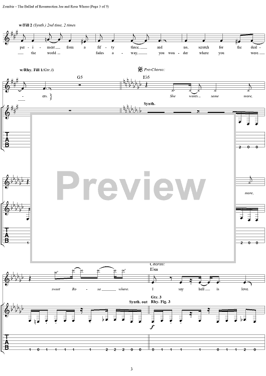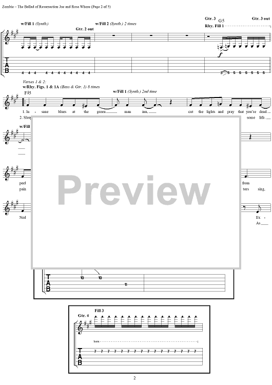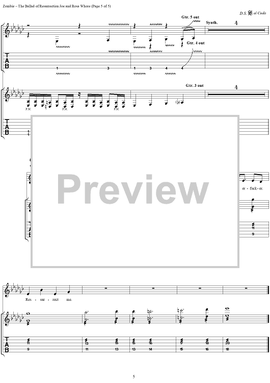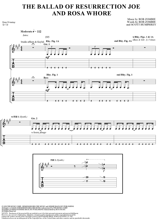 Digital Sheet Music for The Ballad of Resurrection Joe and Rosa Whore by Rob Zombie, Scott Humphrey scored for Guitar Tab/Vocal; id:120146