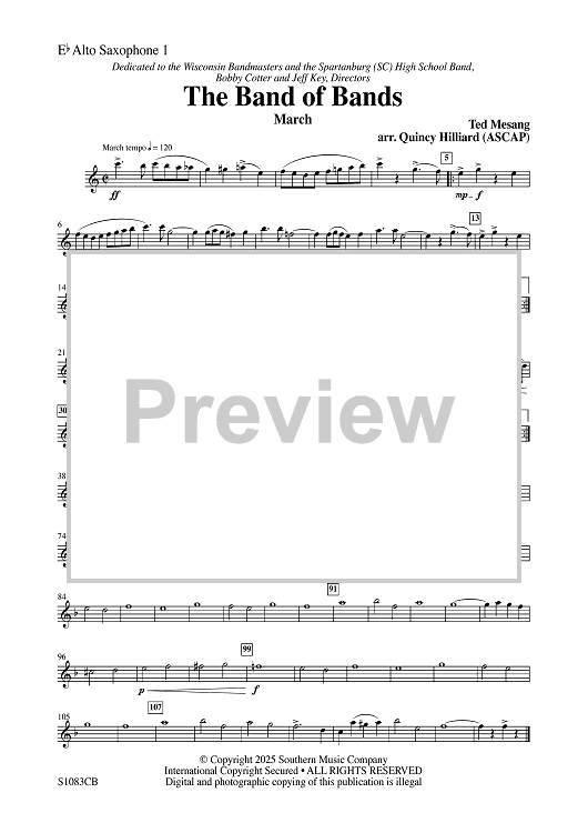 Digital Sheet Music for The Band of Bands - Eb Alto Saxophone 1 by Ted Mesang, Quincy C. Hilliard scored for Concert Band; id:507792