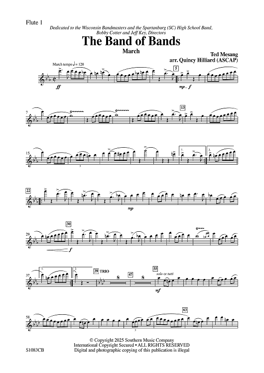 Digital Sheet Music for The Band of Bands - Flute 1 by Ted Mesang, Quincy C. Hilliard scored for Concert Band; id:507783