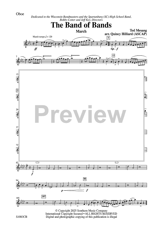 Digital Sheet Music for The Band of Bands - Oboe by Ted Mesang, Quincy C. Hilliard scored for Concert Band; id:507786
