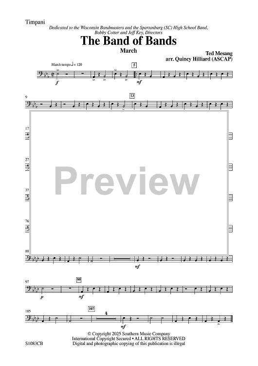 Digital Sheet Music for The Band of Bands - Timpani by Ted Mesang, Quincy C. Hilliard scored for Concert Band; id:507809