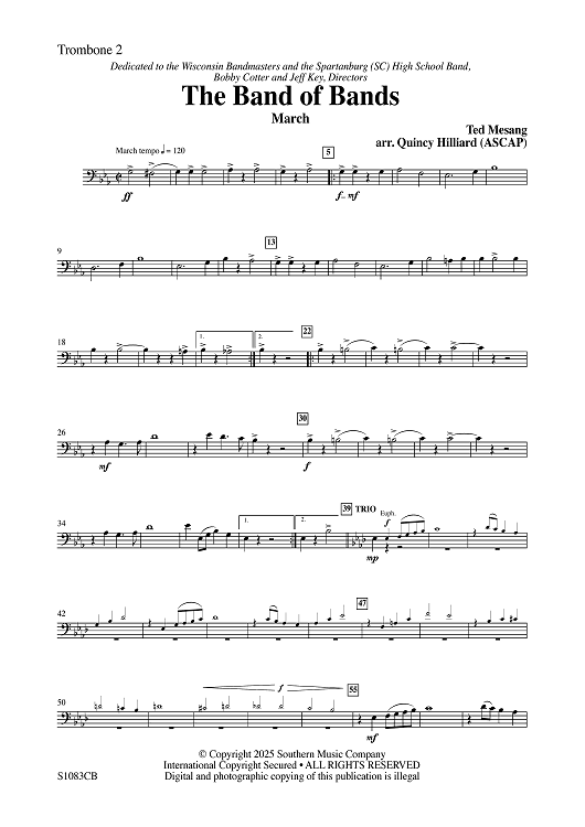 Digital Sheet Music for The Band of Bands - Trombone 2 by Ted Mesang, Quincy C. Hilliard scored for Concert Band; id:507802