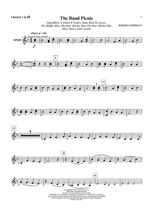 "The Band Picnic - Clarinet 1 in Bb" Sheet Music by Joseph Compello