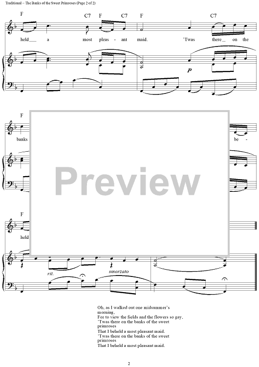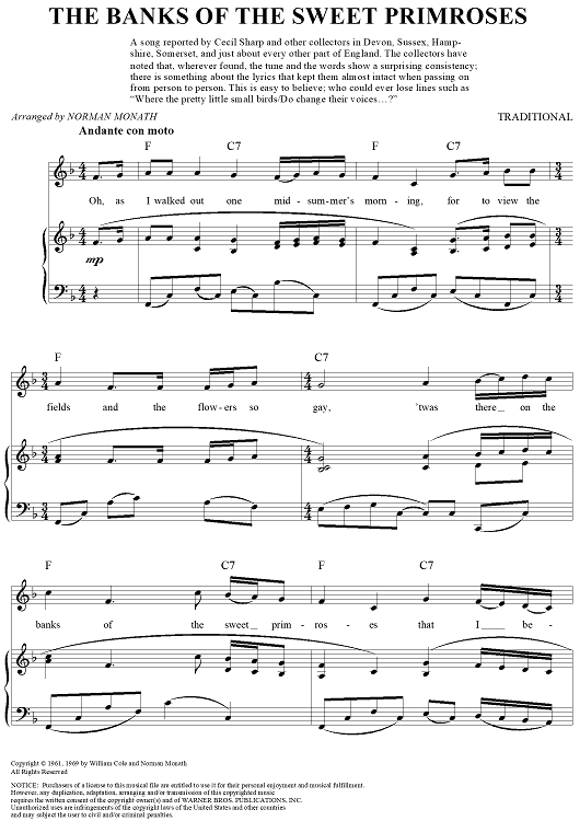 Digital Sheet Music for The Banks of the Sweet Primroses by Norman Monath, Traditional scored for Piano/Vocal/Chords; id:260417