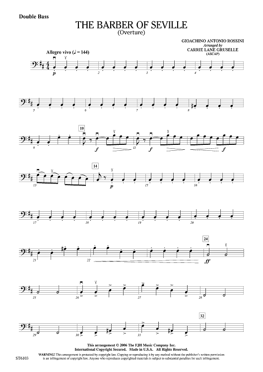 Digital Sheet Music for The Barber of Seville - Double Bass by Gioachino Rossini, Carrie Lane Gruselle scored for Orchestra; id:505907