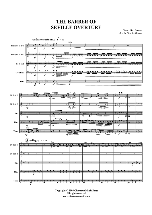 Digital Sheet Music for The Barber of Seville Overture - Score by Gioachino Rossini, Charles Warren scored for Brass Quintet; id:320387