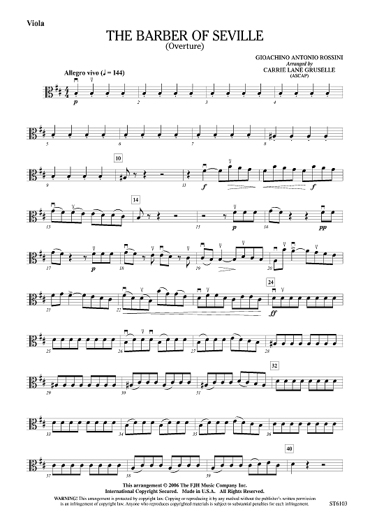 Digital Sheet Music for The Barber of Seville - Viola by Gioachino Rossini, Carrie Lane Gruselle scored for Orchestra; id:505905