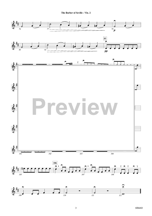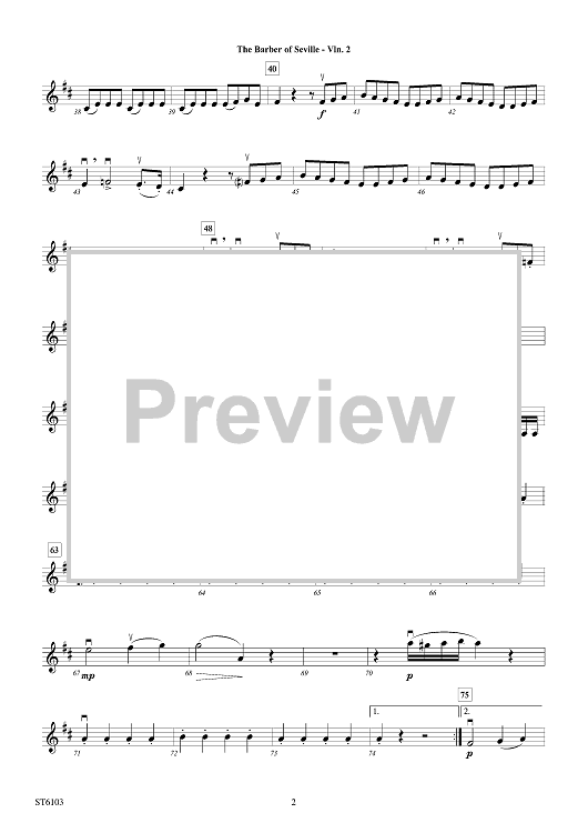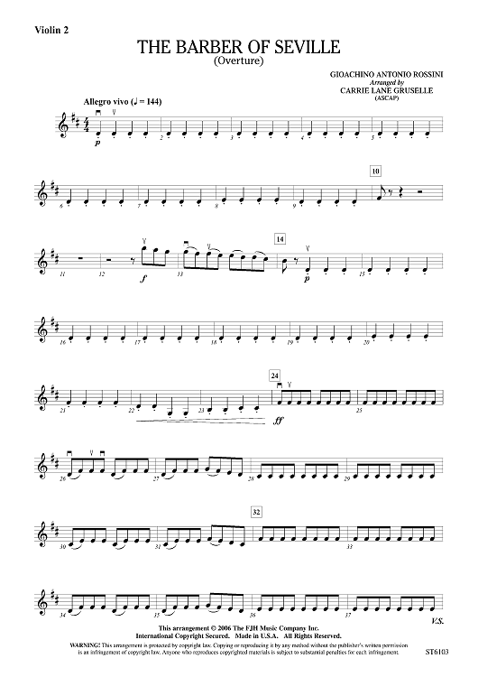 Digital Sheet Music for The Barber of Seville - Violin 2 by Gioachino Rossini, Carrie Lane Gruselle scored for Orchestra; id:505904