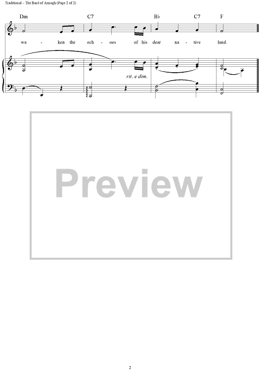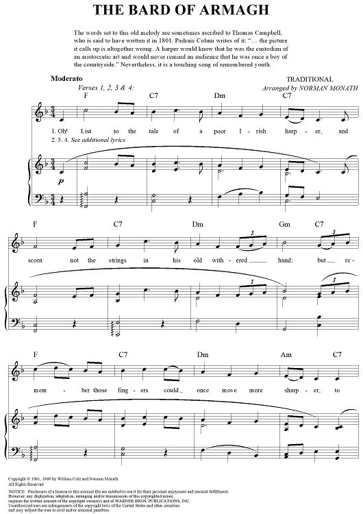Digital Sheet Music for The Bard of Armagh by Norman Monath, Traditional scored for Piano/Vocal/Chords; id:260424