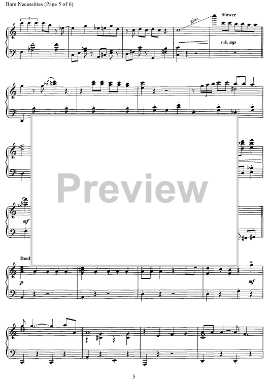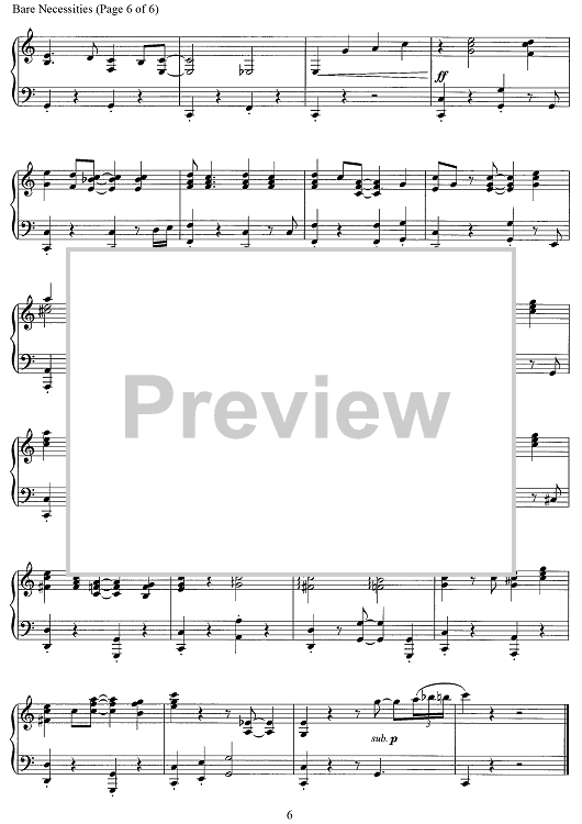 Digital Sheet Music for The Bare Necessities - from The Jungle Book by Terry Gilkyson scored for Piano Solo; id:468914