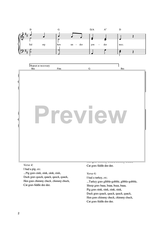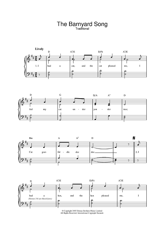 Digital Sheet Music for The Barnyard Song by scored for Piano/Vocal/Chords; id:387575