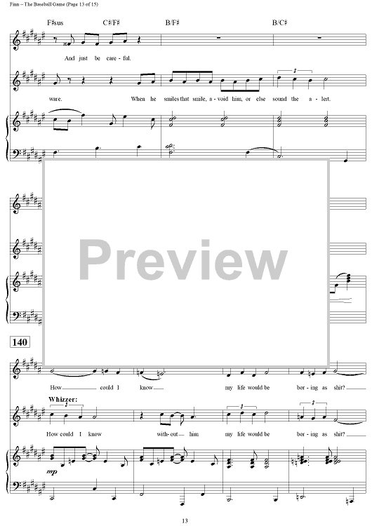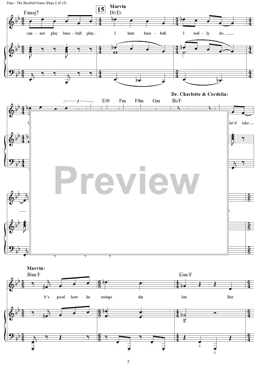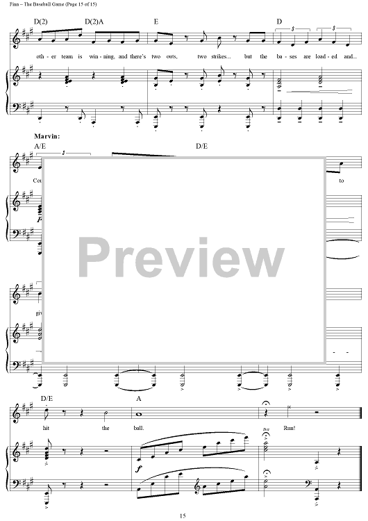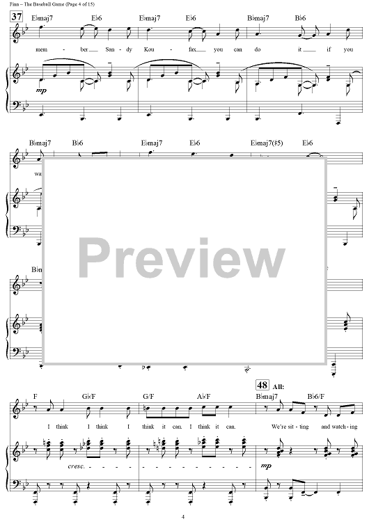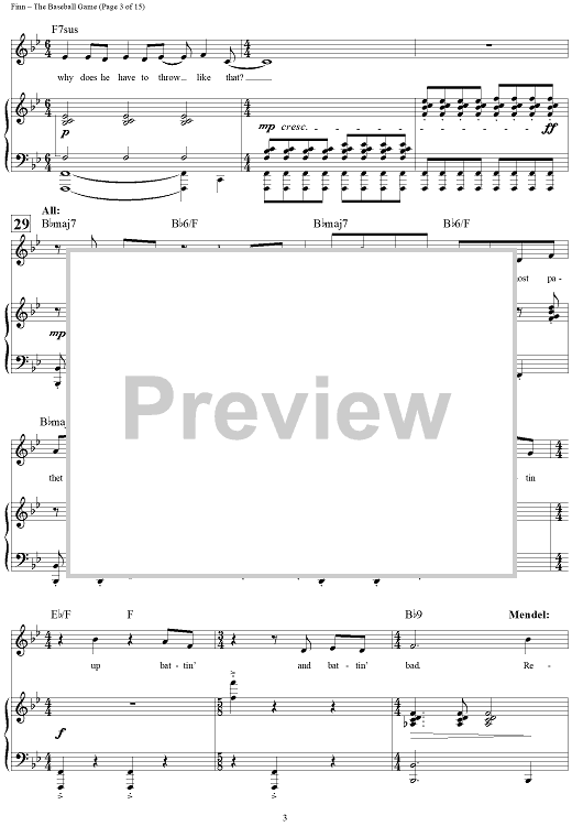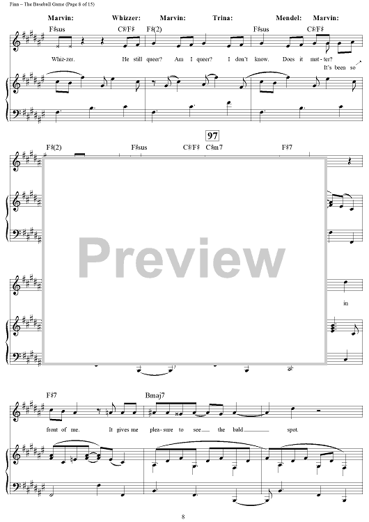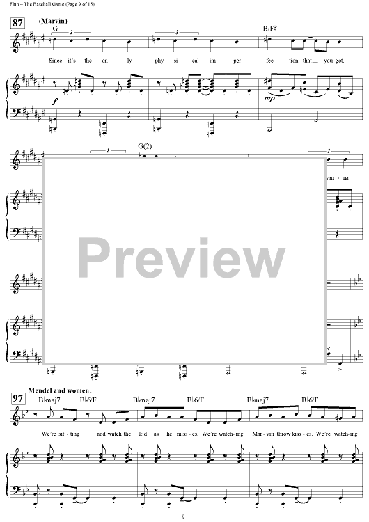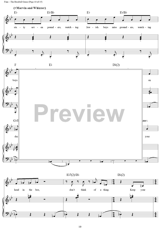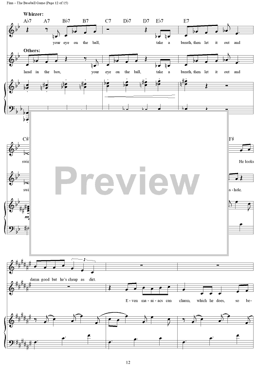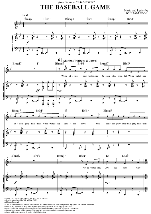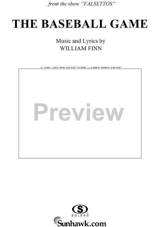 Digital Sheet Music for The Baseball Game by William Finn scored for Piano/Vocal/Chords; id:116292