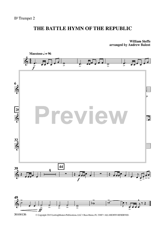 Digital Sheet Music for The Battle Hymn of the Republic - Bb Trumpet 2 by William Steffe, Andrew Balent scored for Concert Band; id:459694