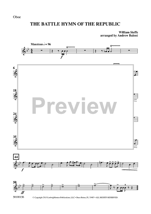 Digital Sheet Music for The Battle Hymn of the Republic - Oboe by William Steffe, Andrew Balent scored for Concert Band; id:459684