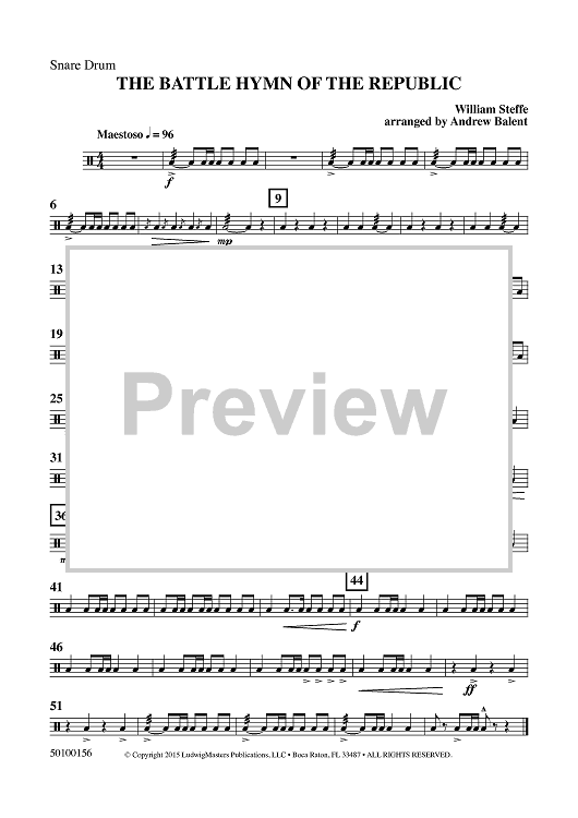 Digital Sheet Music for The Battle Hymn of the Republic - Snare Drum by William Steffe, Andrew Balent scored for Concert Band; id:459704