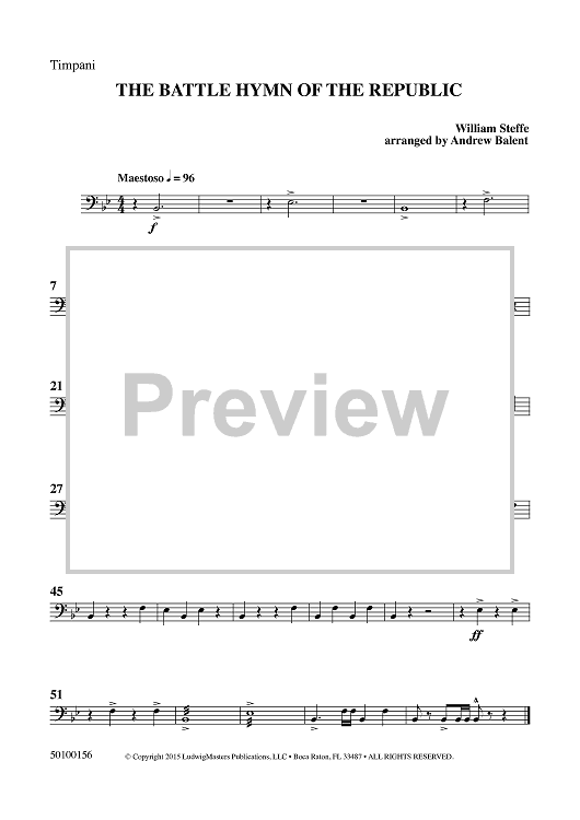 Digital Sheet Music for The Battle Hymn of the Republic - Timpani by William Steffe, Andrew Balent scored for Concert Band; id:459702