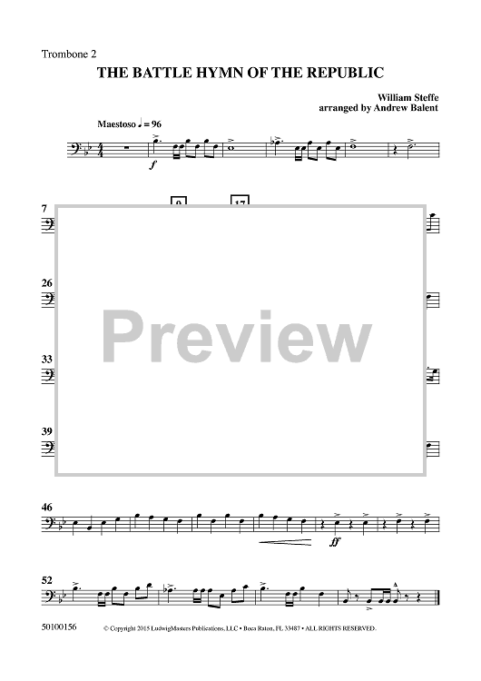 Digital Sheet Music for The Battle Hymn of the Republic - Trombone 2 by William Steffe, Andrew Balent scored for Concert Band; id:459698