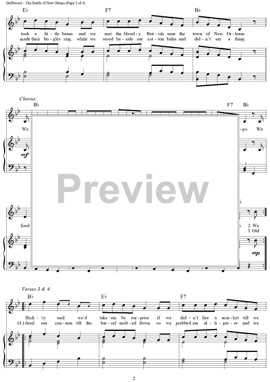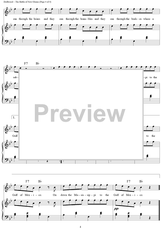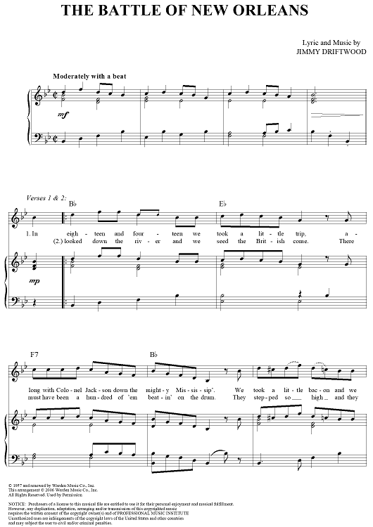 Digital Sheet Music for The Battle of New Orleans by Johnny Horton, Jimmy Driftwood scored for Piano/Vocal/Chords; id:315126