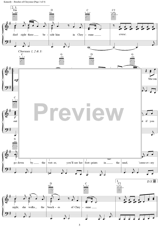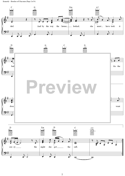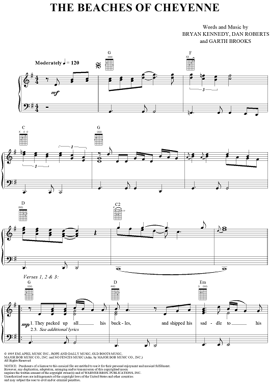 Digital Sheet Music for The Beaches of Cheyenne by Garth Brooks, Dan Roberts, Bryan Kennedy scored for Piano/Vocal/Chords; id:124348