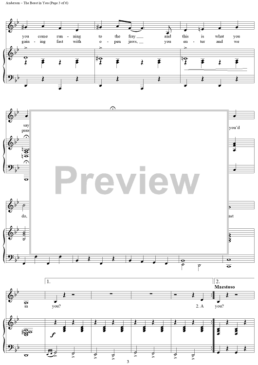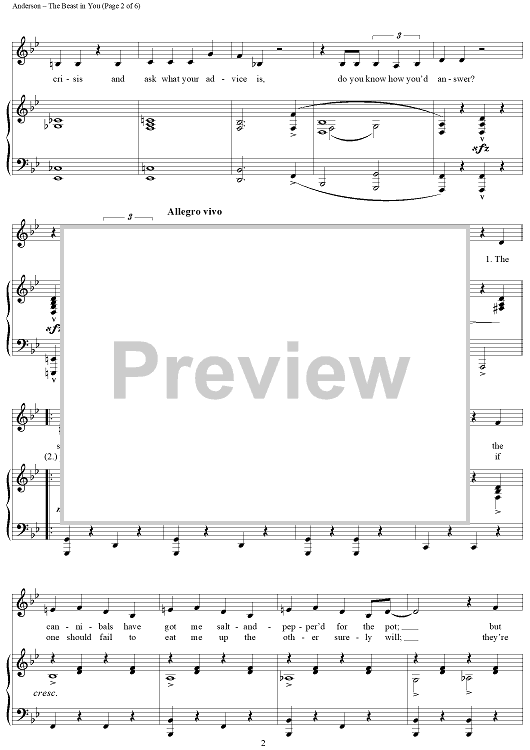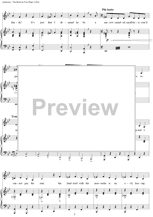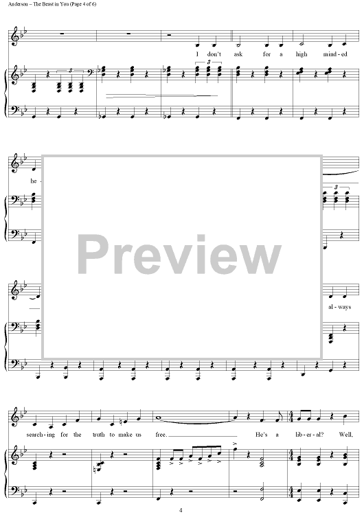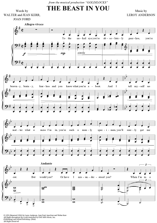 Digital Sheet Music for The Beast in You by Leroy Anderson, Walter Kerr, Jean Kerr, Joan Ford scored for Piano/Vocal; id:183981