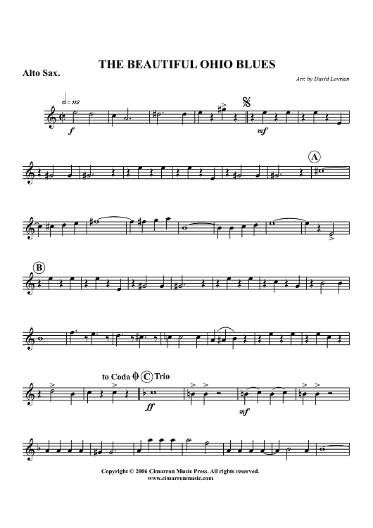 "The Beautiful Ohio Blues - Alto Saxophone" Sheet Music by