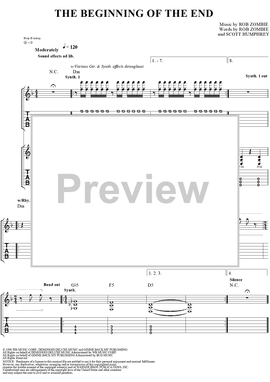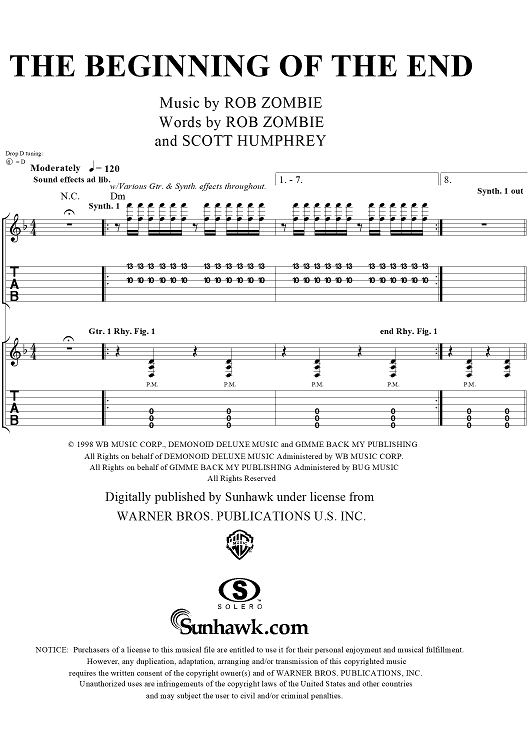 Digital Sheet Music for The Beginning of the End by Rob Zombie scored for Guitar Tab/Vocal; id:262584