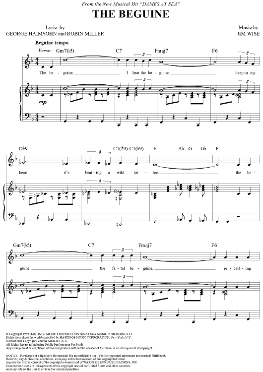 Digital Sheet Music for The Beguine by Jim Wise, George Haimsohn, Robin Miller scored for Piano/Vocal/Chords; id:312607