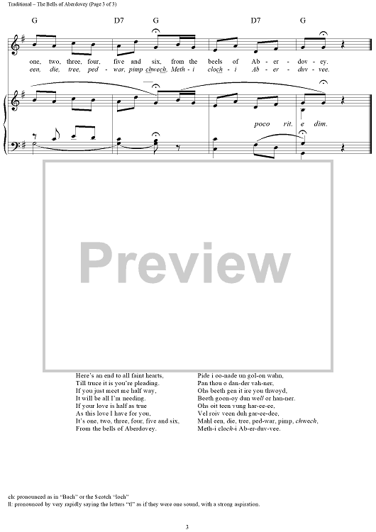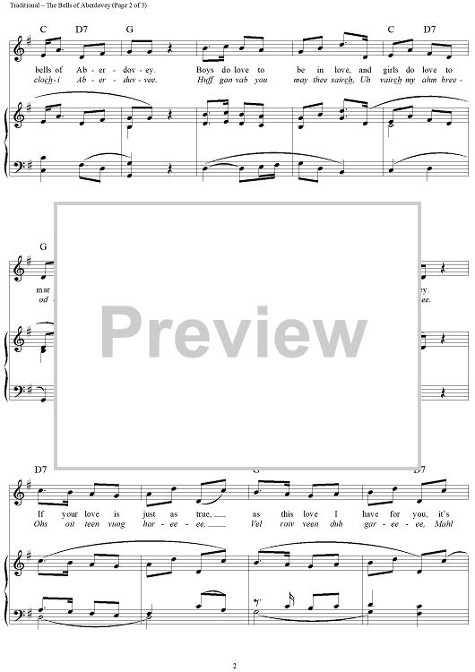 Digital Sheet Music for The Bells of Aberdovey by Norman Monath, Traditional scored for Piano/Vocal/Chords; id:260448