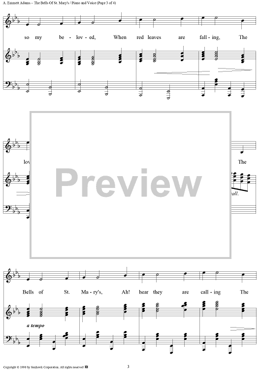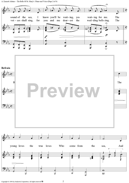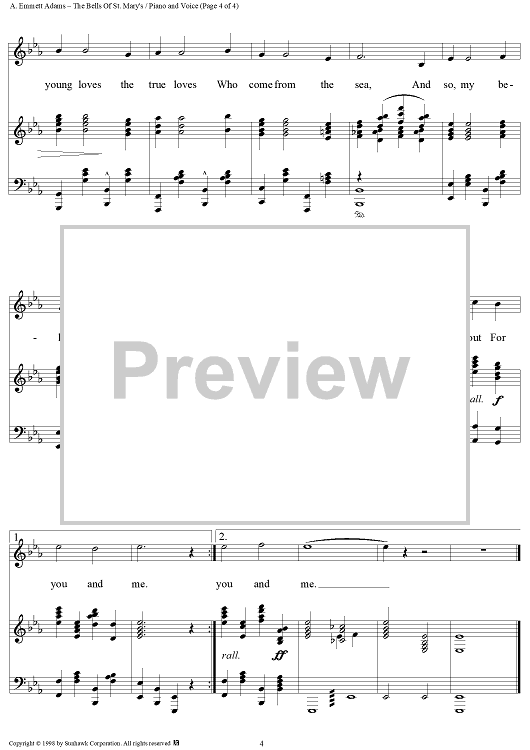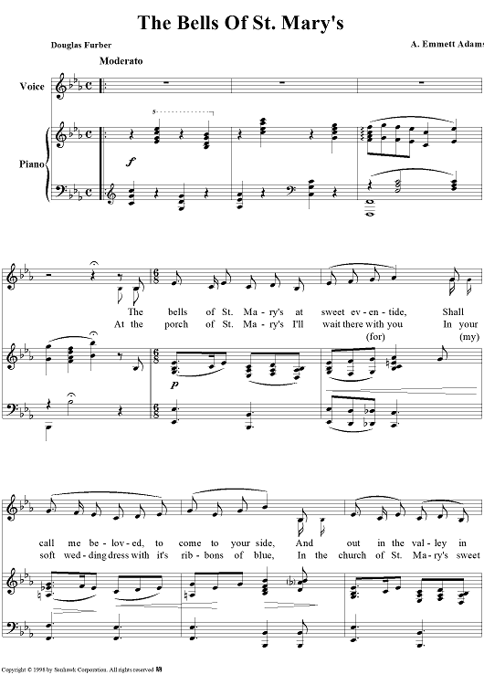 Digital Sheet Music for The Bells of St. Mary's by Douglas Furber, A. Emmett Adams scored for Voice/Piano; id:267118