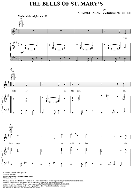 Digital Sheet Music for The Bells of St. Mary's by Douglas Furber, A. Emmett Adams, Bob B. Soxx & the Blue Jeans scored for Piano/Vocal/Chords; id:304316