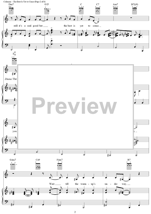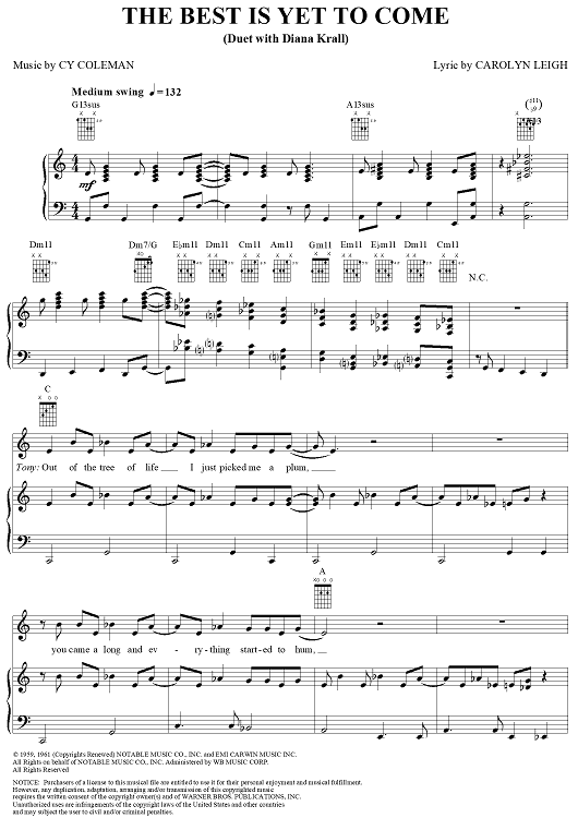 Digital Sheet Music for The Best Is Yet to Come by Cy Coleman, Carolyn Leigh, Tony Bennett, Diana Krall scored for Piano/Vocal/Chords; id:359344