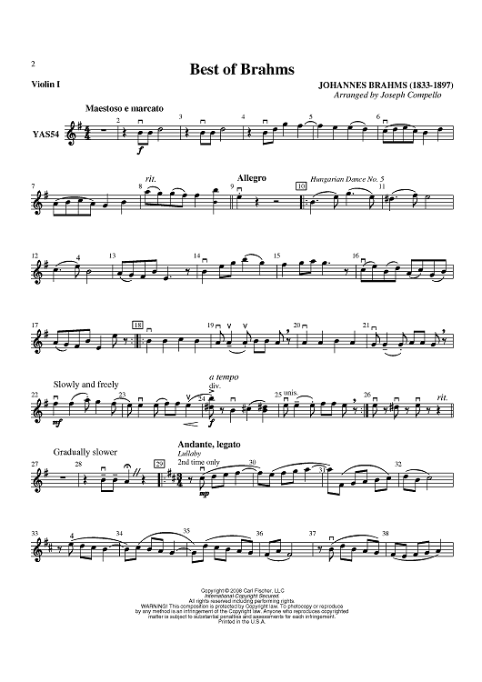 Digital Sheet Music for The Best Of Brahms - Violin 1 by Johannes Brahms, Joseph Compello scored for Orchestra; id:406867